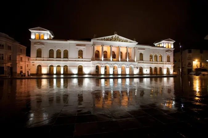 Nuestra segunda parada nos lleva al majestuoso Teatro Nacional Sucre, una joya arquitectónica de estilo neoclásico y uno de los espacios culturales más importantes del país.
